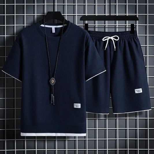 Ensemble t-shirt et short décontractés gaufrés pour hommes, survêtement monochrome, olympiques de sport pour hommes