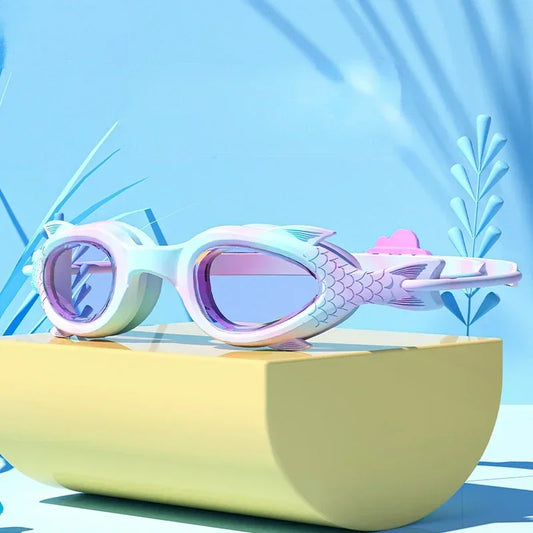 Lunettes de natation professionnelles pour filles, avec bouchon d'oreille, anti-buée