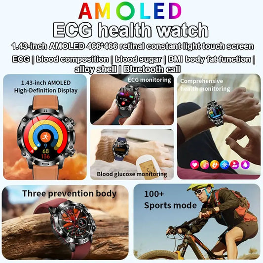 Montre intelligente de sport professionnelle, luxe, mesure sucre dans le sang, lipides, acide urique, pression artérielle, appel BT, montre intelligente, appel bluetooth, haute qualité