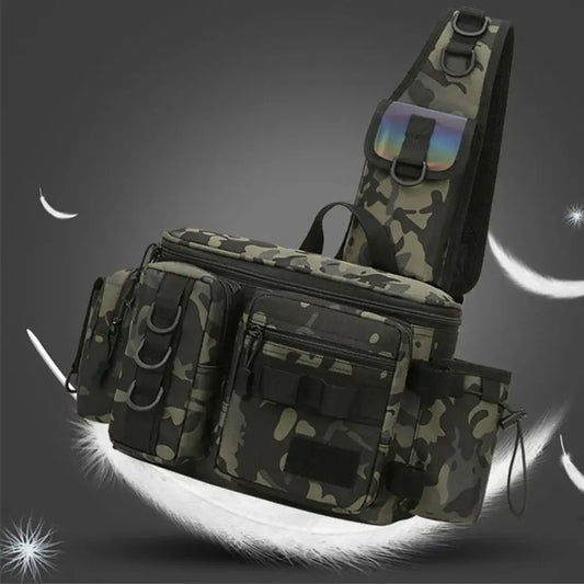 Sac de pêche portable multifonctionnel de grande capacité en tissu Oxford avec support de canne à pêche, bandoulière
