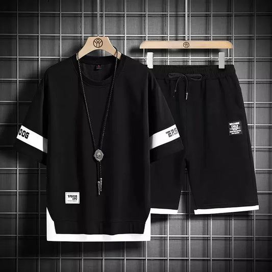 Survêtements d'été pour hommes, noir et blanc, ensemble manches T-Shirt + short, vêtements de sport de marque
